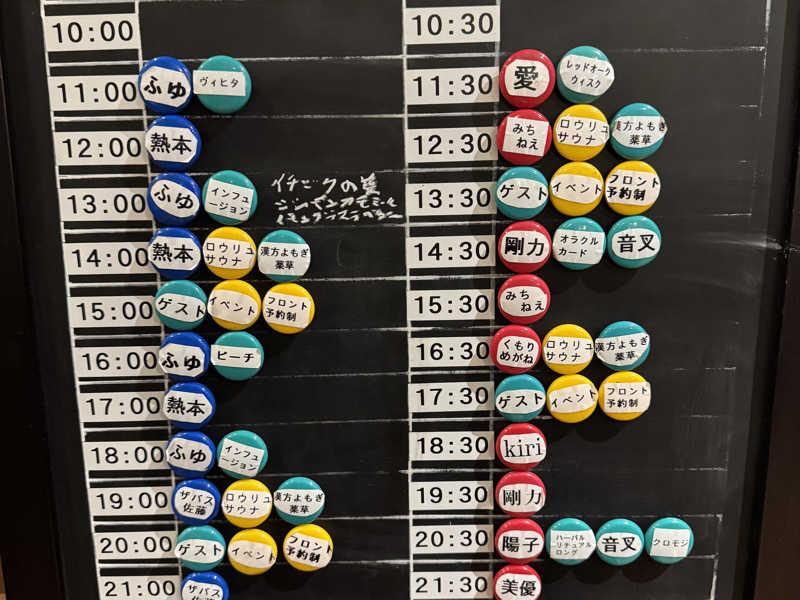 13:30からはみーちゃんのアウフグース①。2段目中央に座る。かわいい顔からは想像できない熱さ。ロウリュで上がった蒸気をブロワーで下へ下ろしてくる。最初は20人ほどいたのに3セット目には5人程度まで減っていた。2段目に座って大正解w最高に気持ち良かった♪