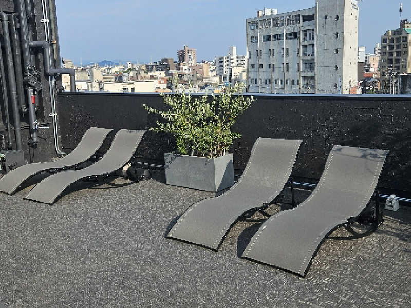翌朝7時に起きて、初の朝サウナ!これが出来るのが、このホテルの醍醐味ですね。昨日は行けなかった屋上ととのいスペースは貸し切りで、既に暑かったですが、日陰のイスにて休憩。月曜の朝にこれ、最高でした笑