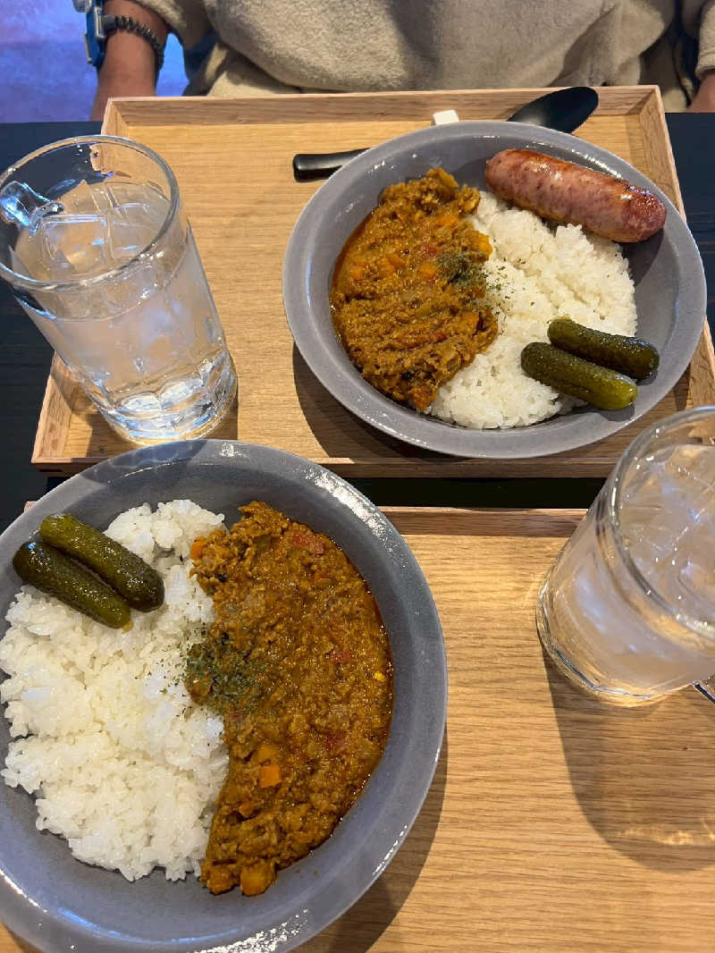 途中で食べたキーマカレー、ソーセージ、ピクルス最高でした!