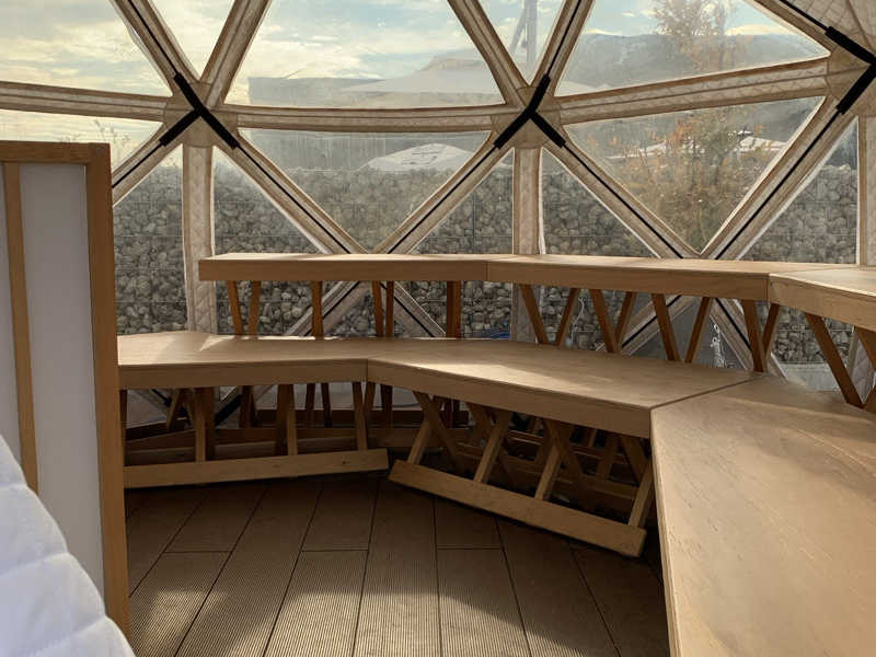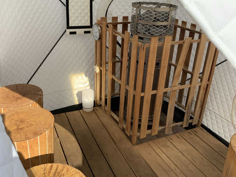小さいテントサウナにも入って、岩盤浴エリアでまったり。