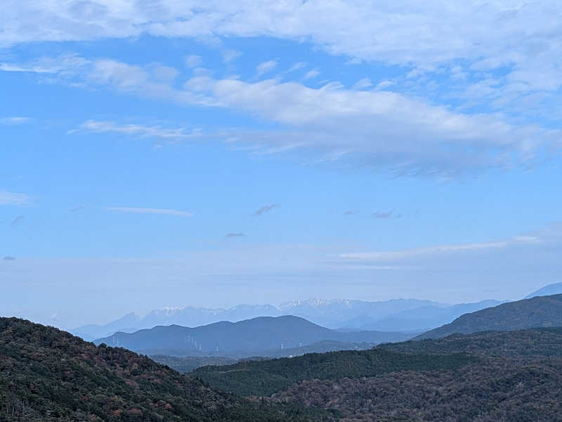 4セット後は内湯にダラダラ浸かり、上がったあとは畳の休憩スペースで爆睡。退店後は近くのラーメン屋で飯食って買い物したあと時間持て余したので三国山中腹の景色の良い場所で恵那山と中央アルプス拝んだ後睡魔と戦いながら帰宅。