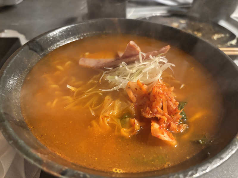 お久しぶりTIGER🐯🩷 ロウリュは初めてハッカを選択しました 汗だくなのに身体はスースー不思議な感覚 花粉症の時期に入ったら良さそうだと思いましたw タイガーはサウナも90度台であつあつで、氷も頼み放題なので常に冷たい水風呂入れるから大好きです🥹 サ飯は辛ラーメンいただきました🔥バナナスムージーもおいしかったけど写真撮り忘れた…