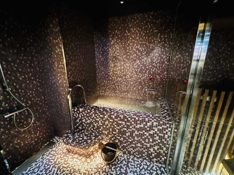 とても綺麗な個室。サウナは89度くらいだが、天井が低いため体感は90-95はある。トイレが個室内にないのが残念。