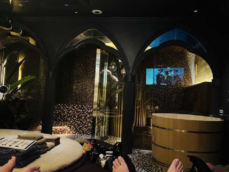 10x4 サウナの中で寝転がるとめちゃくちゃ汗をかくことを最近覚えた!しかも、より芯から温まる気がする!水風呂もへっちゃらさ!今回はお友達と妻と3人で!