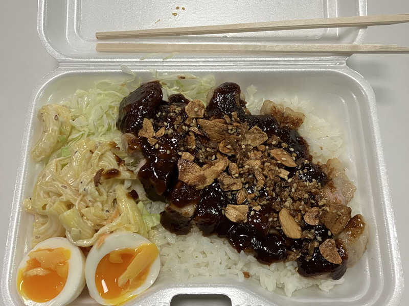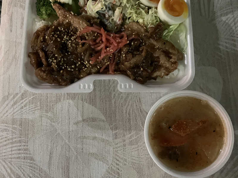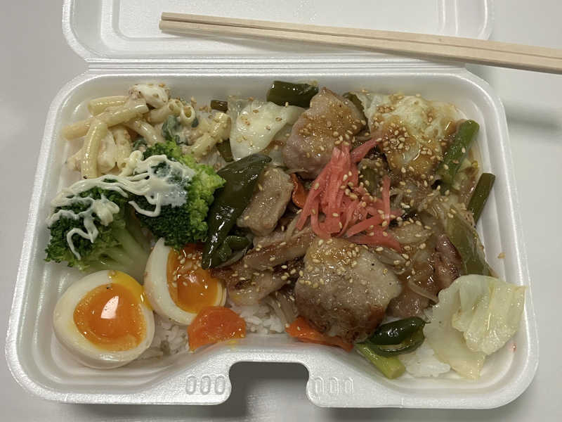 エスコンから月見湯に向かいお腹すいていたので月見湯に来ているマジックキッチンの裏メニューのおまかせ弁当のトンテキ弁当を美味しくいただきました😆