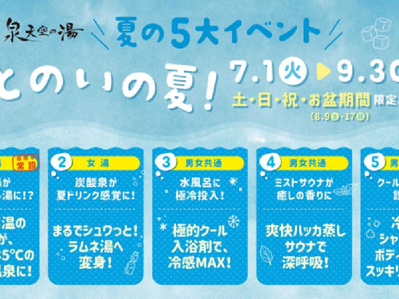 土日祝はイベントで極水風呂、女性湯は炭酸泉でラムネの香りも楽しめるらしい。