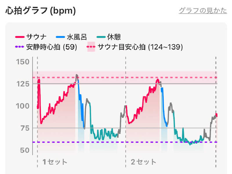 そして改めてサ室は神...。10分1回ロウリュで保たれている高温&高湿度、二重扉で熱も逃げないからいつ入ってもサイコウ。1セット目から極上のあまみが出現し、バチぎまる。