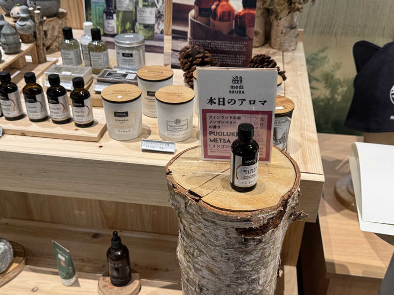 目的はメディサウナのアロマで、今日までは「リンゴンベリー」のアロマ水。甘めだけど甘すぎないで癒されました。でも一番好きなのは「KOIVU/バーチ」かな!バーチの時は匂いが美味すぎて(?)ずっと静かにスーハースーハーしてます 笑