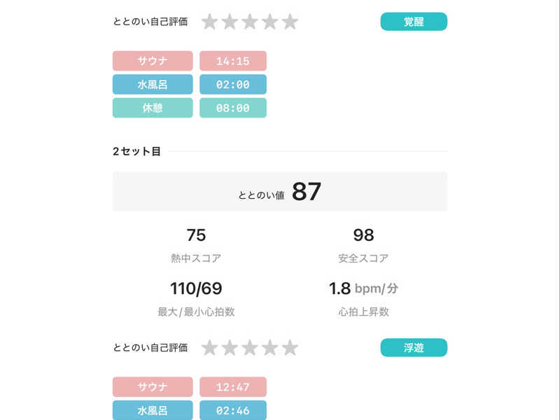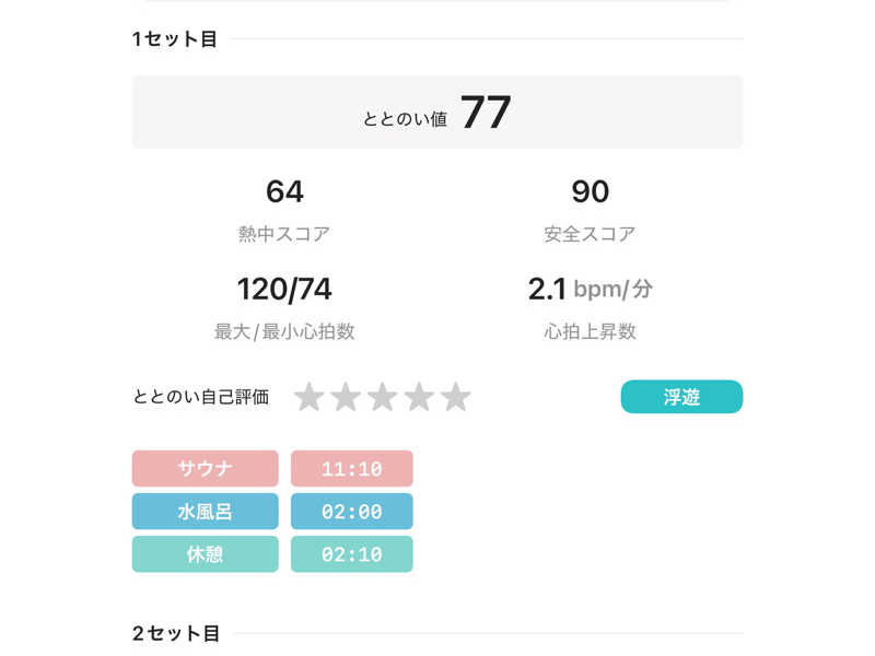 黄土サウナ8分→超冷水風呂→水風呂→休憩10分