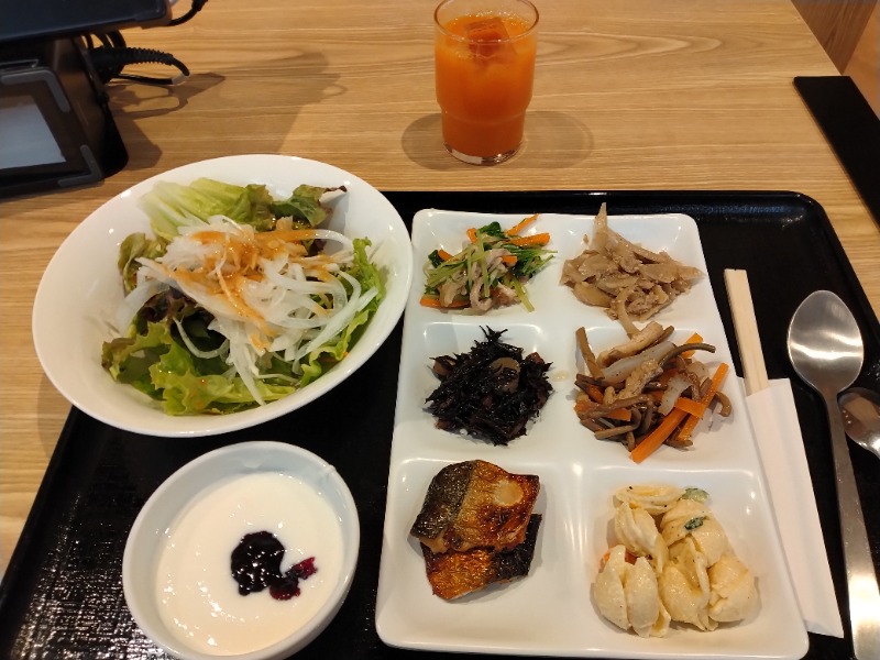 サウナ後はお待ちかねの朝食バイキング。これまた美味なり。和食のおかずも多く、卵かけご飯があるのも嬉しい。