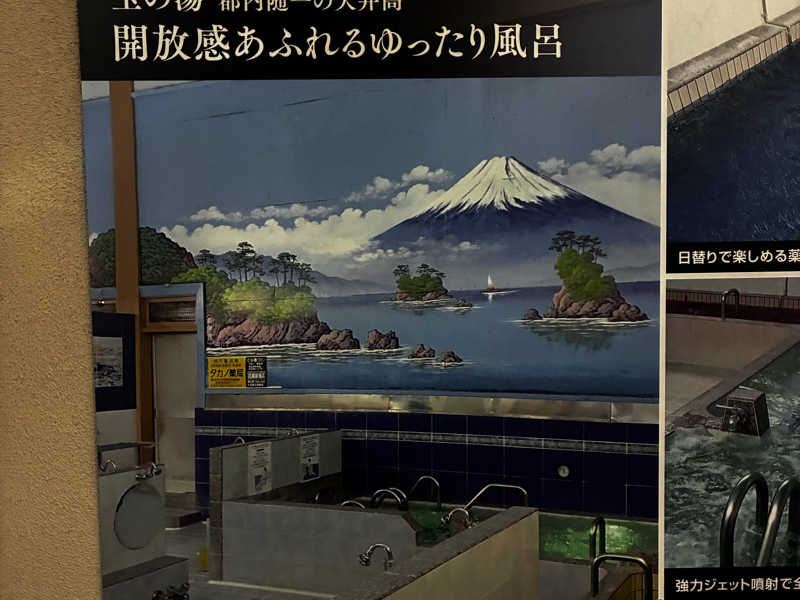 休憩中に壁絵、富士のペンキ絵がいつも以上に綺麗に見えた。