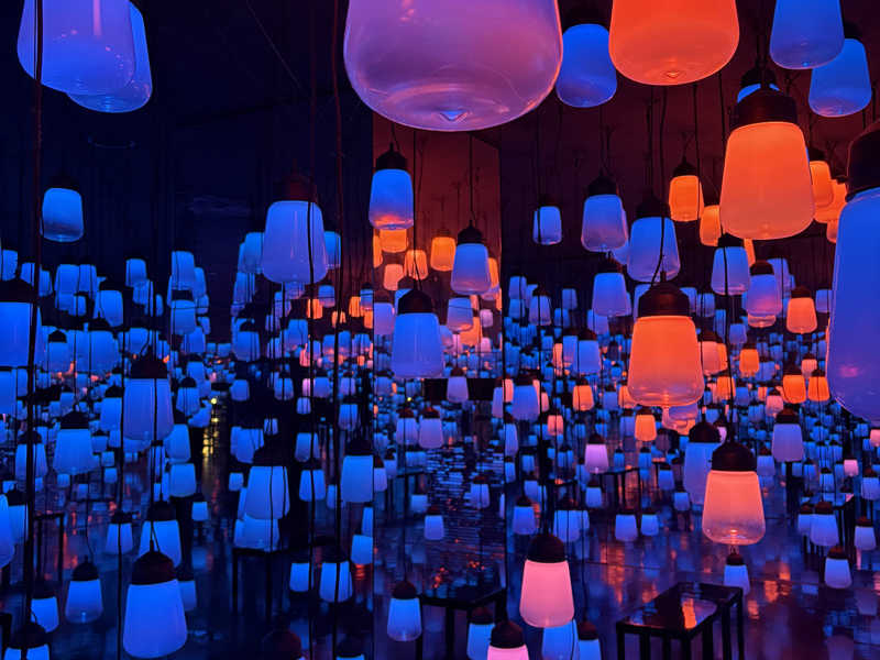 サウナ室の席が高く最上段で受けるロウリュは気持ちいい…!3D木工の天井や中庭を望むガラスも良きかな…