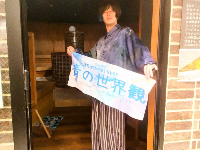 ピーチ🍑ティーをロウリュしてからのタオルでのあおぎは、長い手が生かされて目の前いっぱいにタオルが広がっている👏✨️✨️
