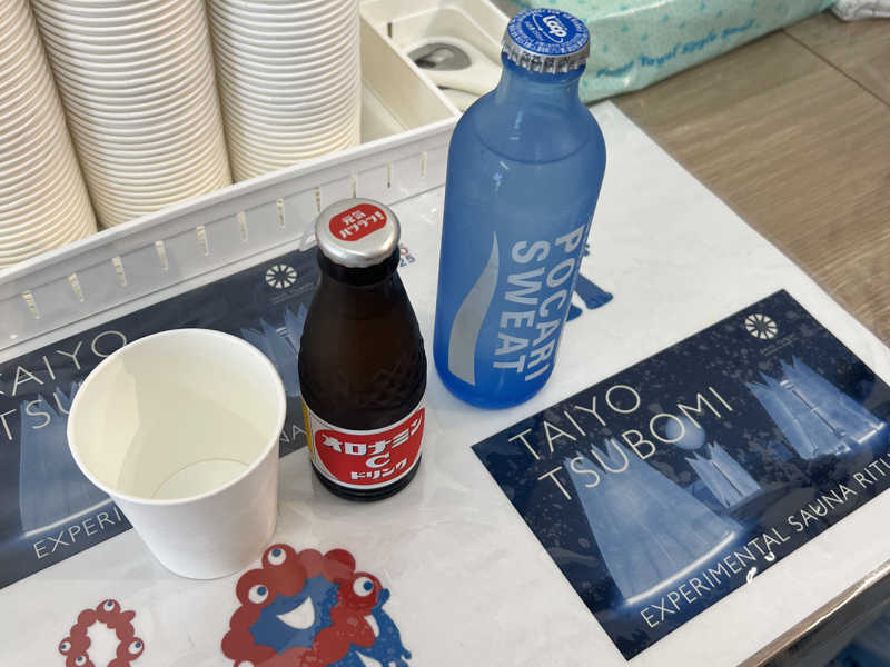 体験中の900mlイオンウォーターと体験後の瓶ポカリとオロナミンCが無料提供されるのも嬉しい。