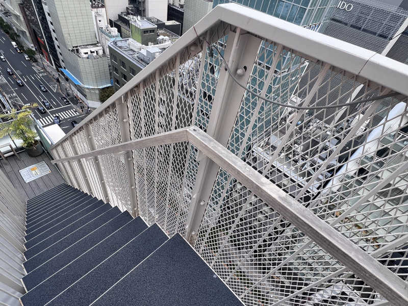 屋上にある外気浴スペースの抜け感は最高だけど当日は下の道路でデモ隊がシュプレヒコールをあげていてうるさいのなんの。