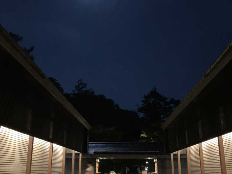 うっすら湯気が漂う気温の露天と満月のコラボ