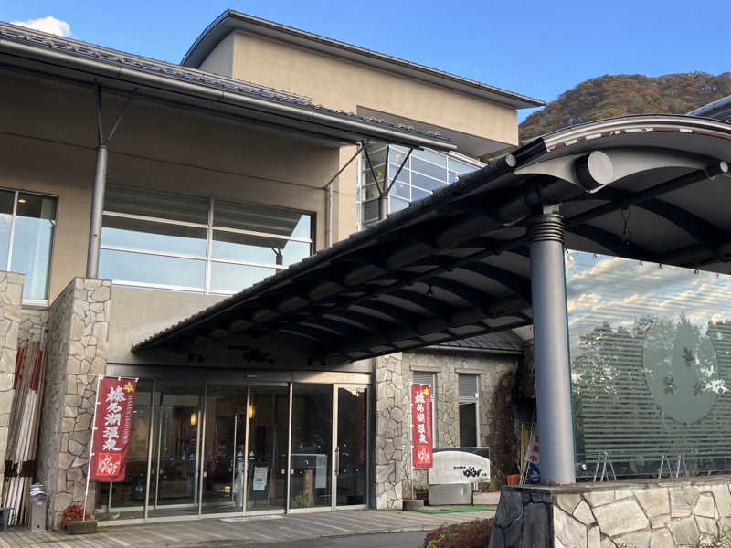 露天も5人も入ればいっぱいなくらい狭いんだけど、目隠しと壁の隙間から榛名湖がチラ見出来る、湖面からの空気で外浴気持ちいい