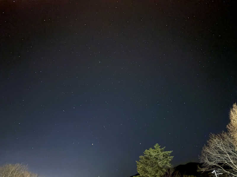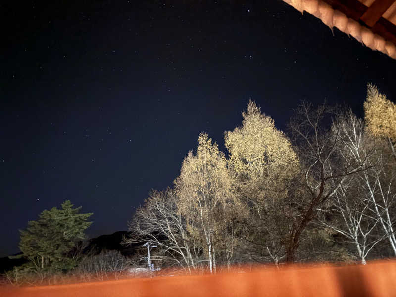 外気浴、気温0℃前後で無風。裸眼のためぼんやりとしか見えませんが星空外気浴。
