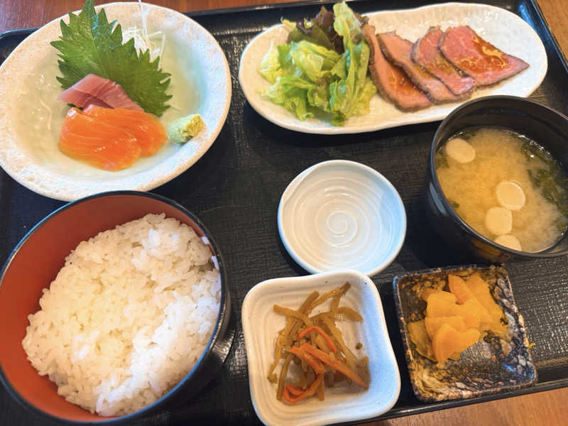 ローストビーフサラダ(ハーフ)とお蕎麦を頂いてから入浴