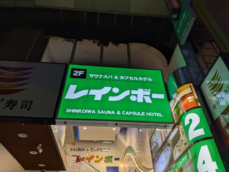 今日は仕事のプチストレスを解消すべしとやってきましたレインボー新小岩さん。18時ぐらいにin、20時からスタッフさんのロウリュがあると知りサクッと1セットを頂き熱風JPさんともう1名のスタッフさん(名前をわすれてしまいましたごめんなさいm(_ _;)m)の熱波を受けてきました。物凄く良い。2セット目まで頂き退室。水風呂を1分、休憩8分。フクロウサウナ〜ミストサウナ。全てのサウナを堪能し爆睡。朝一の1セットを頂き今日会社に向かいます。