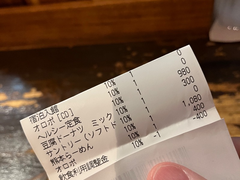 今回はアプリスタンプでドリンク2杯とリラクゼーションでドリンク1杯と合計3杯のドリンクサービスをいただきましたが、精算時に1杯分が加算されていました。