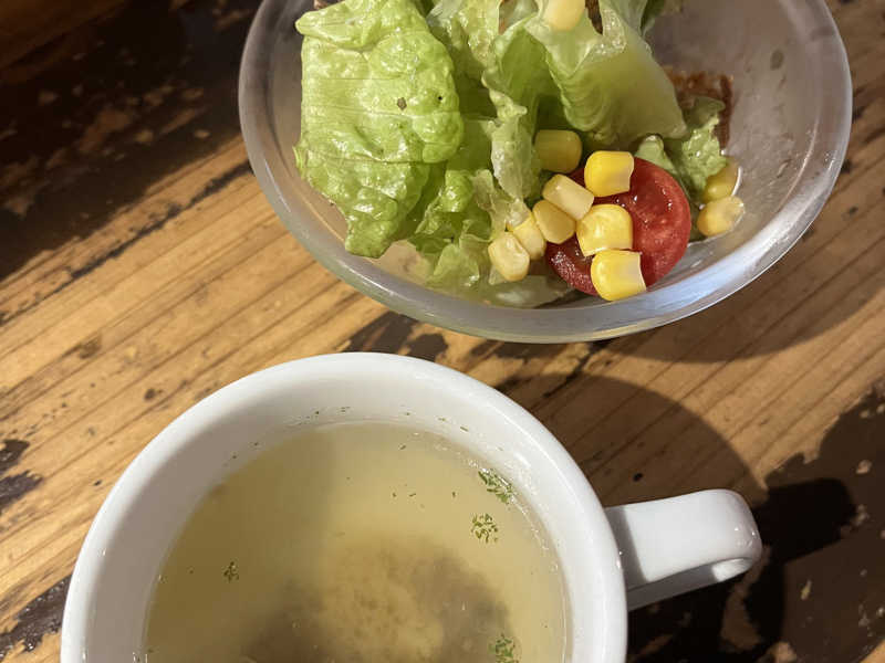 モウムリ😇サラダや気まぐれ小鉢もサービスしてくれて550円はこの時代に破格です。