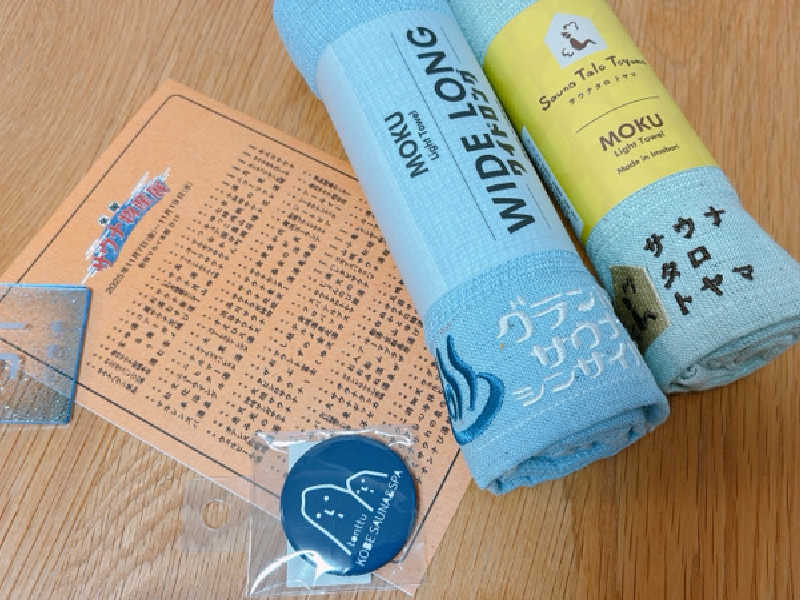 昨日サウナ物産展でゲットしたグッズたちを持参\( ´ω` )/