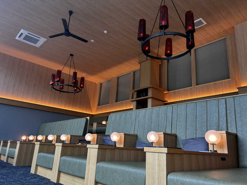 サウナ横のダイニングでオリオンの生が飲める!お食事もできて、まったりできるのが最高過ぎた!!