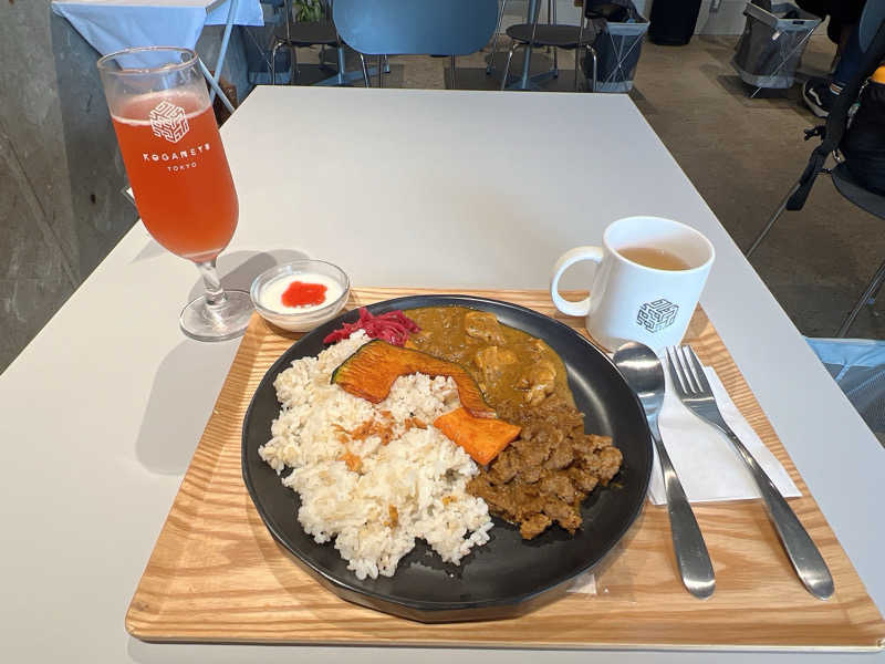 サ飯は櫻井さんのバターチキンカレーとレディースディ限定のスムージー✨