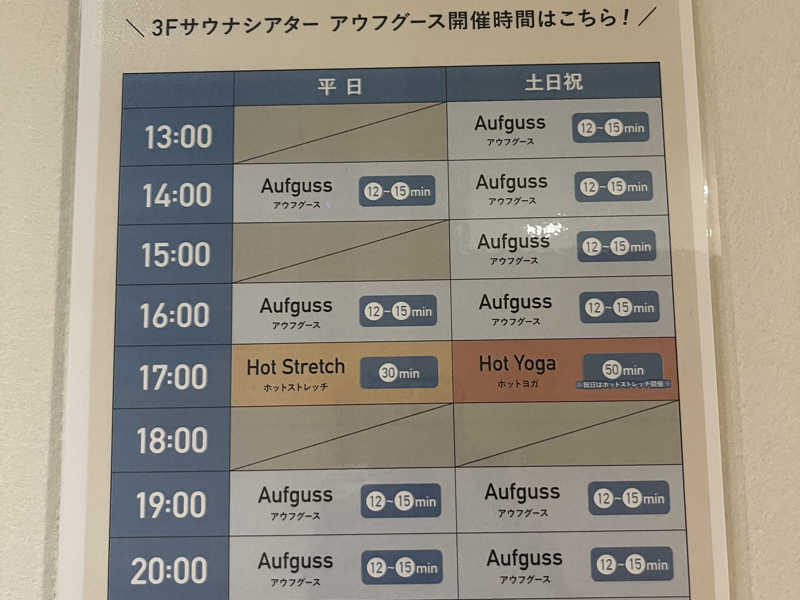 14:00ぐらいから、温泉客が混雑し始め、洗い場が満席になることも。でも、サウナに入る人は限られていて、ロウリュウもでき、大満足!水風呂の柔らかい肌触りが忘れられません!