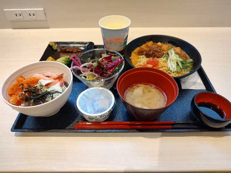 入浴前に夜鳴きそば、続けて夜サウナ、睡眠、朝サウナ、朝サ飯の順。