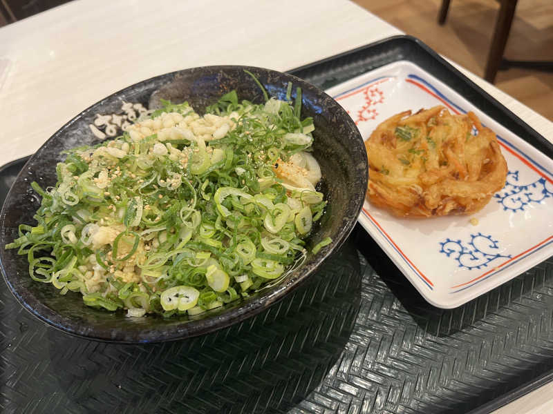 サウナ後は店内フードコートの「はなまるうどん」へ直行。選んだのは「温玉ぶっかけ」と「野菜かき揚げ天ぷら」。冷たい出汁が汗をかいた身体に染みわたり、温玉のまろやかさとサクサクのかき揚げが絶妙なバランス。シンプルながらもサウナ後に欲しい塩気と炭水化物をしっかり補給でき、胃袋からも“ととのい”を実感した。
