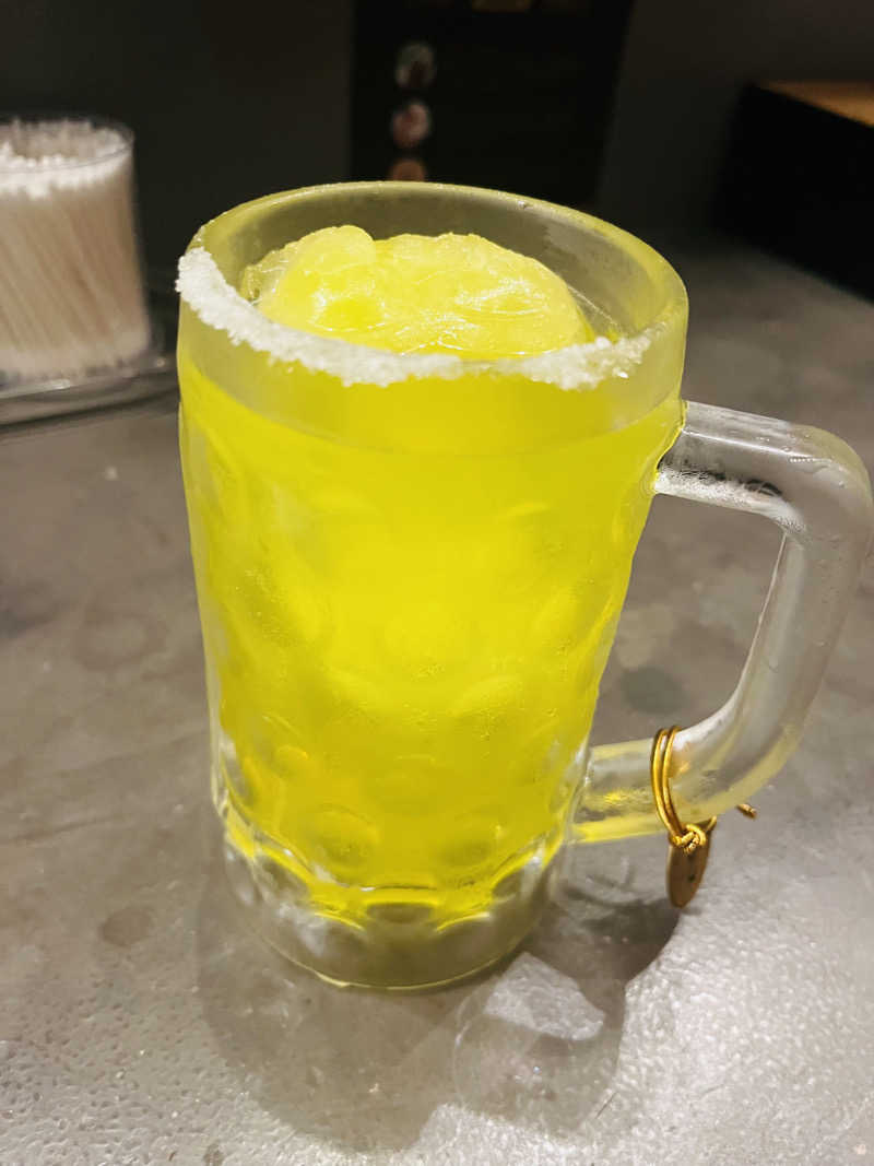 グラスの蓋に塩が塗られてる。ものすごくまろやかなやさしい塩。氷もオロポで作ってあって、シャーベットみたいに氷まで食べた。