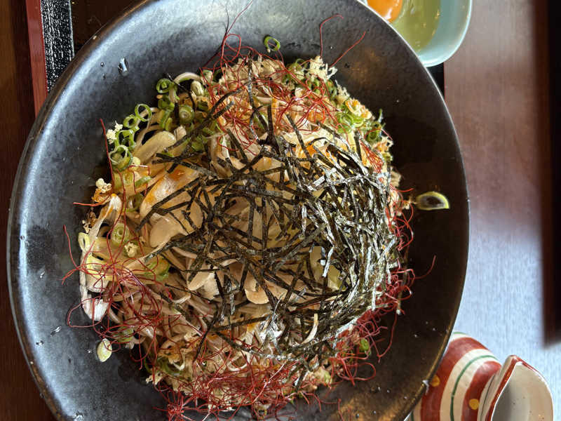 昨日とは打って変わって人が多く、サウナ室もヌシや若い人と多く見られた。サ飯はラー油そば!