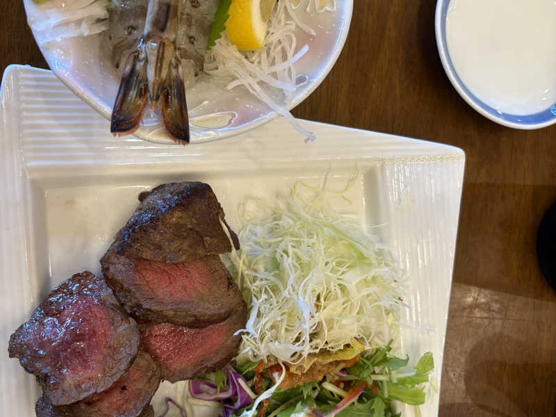 サ飯は上関名物車海老と山口名物高森牛🤤