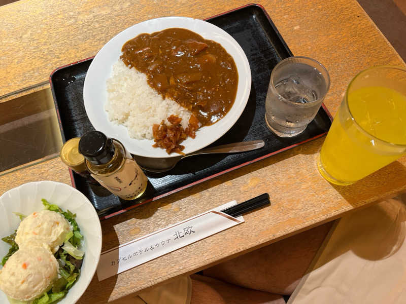 空いていて貸切りで入れたので人生初のセルフロウリュを体験!入室時は約70℃で温度が低いなと感じたが、ロウリュした瞬間から一気に熱波がきて団扇で仰ぎながら空気を回すと、とても気持ち良き!