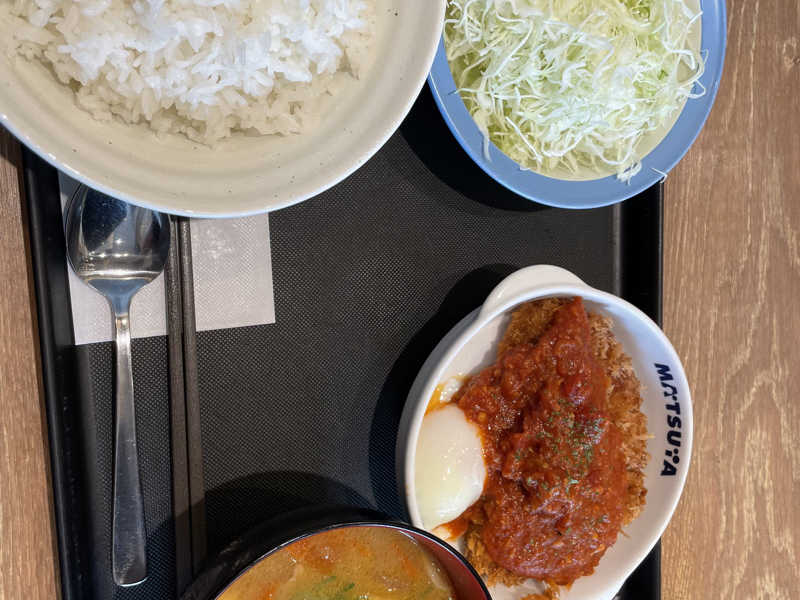 サ飯は越谷駅へ行って松のやでうまトマカツ丼。
