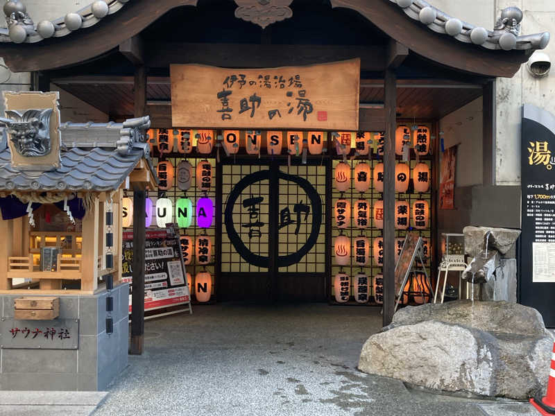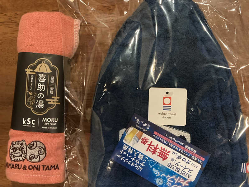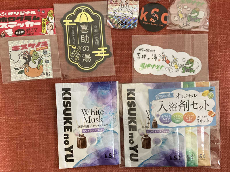 久しぶりに来たことだし、グッズもめっちゃ買った!(サウナハットとタオル)以外もキーホルダー、ステッカー3種、スパバック?、喜助の湯オリジナルの入浴剤、ボトルを買ったぜ!サウナハットに付いていた無料券でアイビブルードリンクを購入+ボトルもついてきて風神サウナを選んだ!