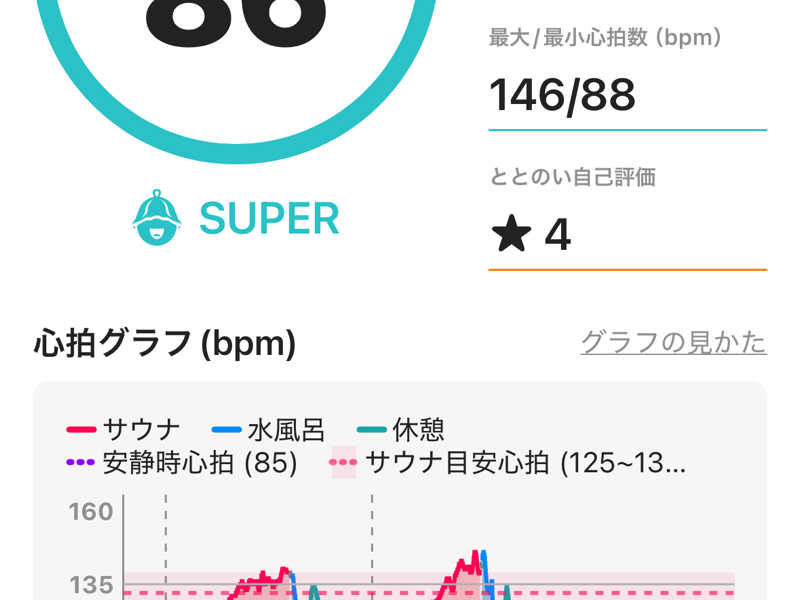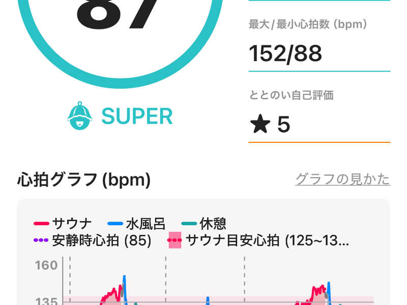 サウナ:12分、8.5分、8分、8分