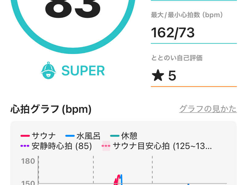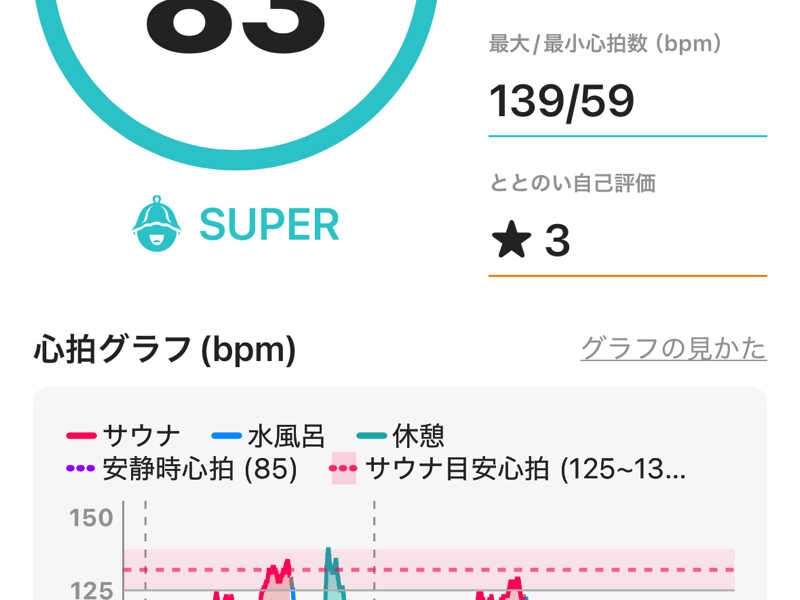 サウナ:8.5分、8分、8分、7分