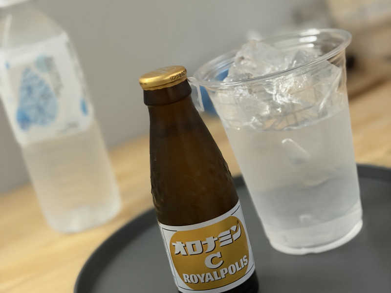 外気浴スペースの梅昆布茶がありがたい。。沁みる。