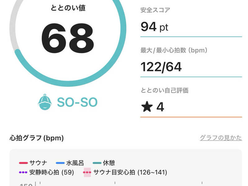 まだまだサウナ初心者なので、ととのい値は上がってません。