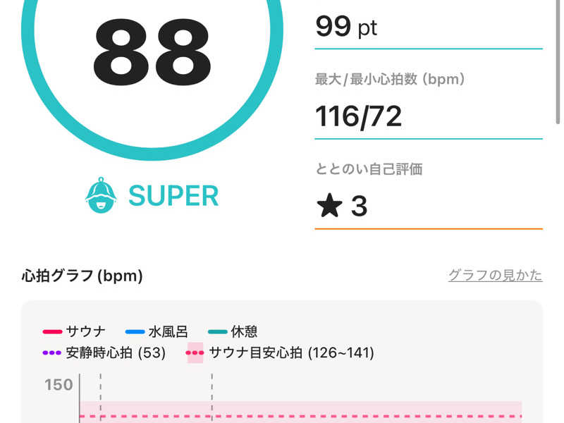今日は日中、出かけてたので疲れが出たからか、サウナ入って心拍数が上がるまで早かった気がした。