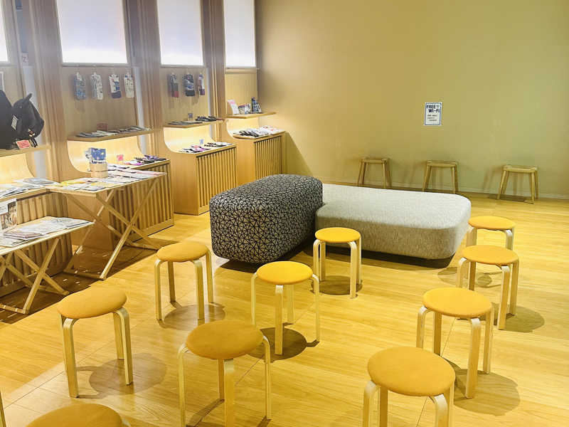 ・タイルで作られたベンチには、一部に足湯があるので、足元を温められる