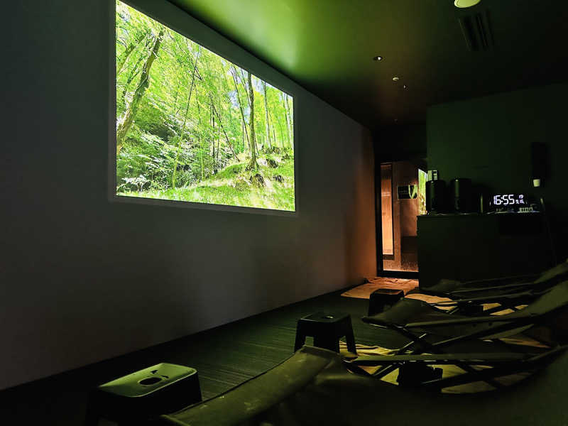 ・森林の映像が投影されていて、森林浴気分を味わえる