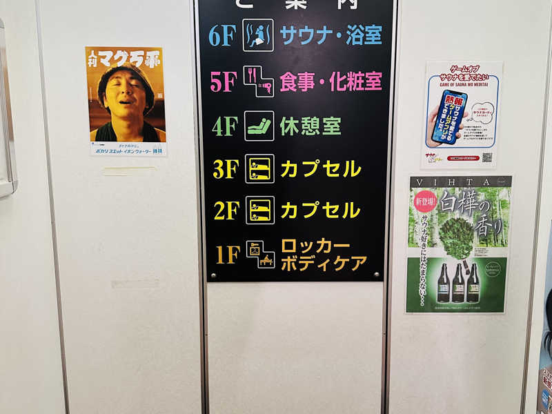 ・砂時計がサ室に置いてあり、5分おきにセルフロウリュ可能