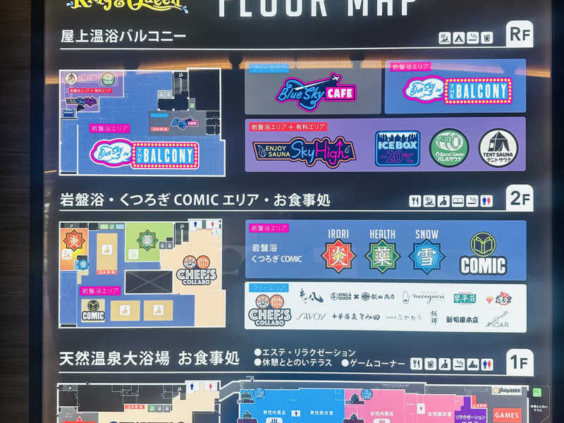 種類豊富で、特に冷凍ルーム内の凍風呂は足の感覚が無くなるくらいに冷たい!