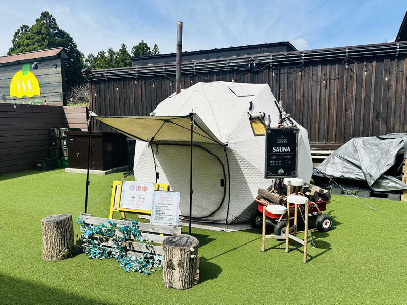 ・外気浴スペースにもベンチがあるので、頭をしっかり付けてととのう事が出来る
