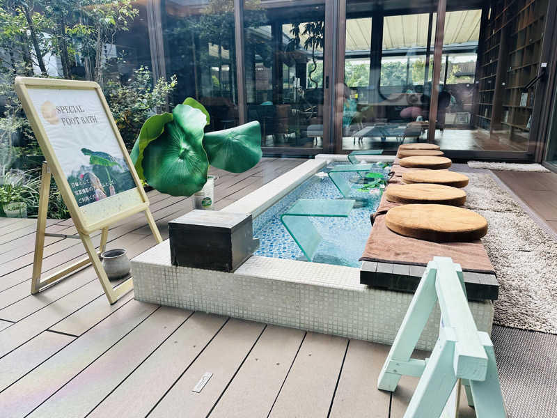 ととのい椅子、デッキチェアが豊富でまさに温泉バルコニー‼︎