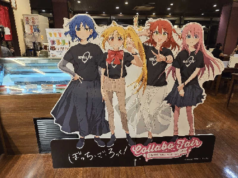 ぼっちざろっくコラボ期間。娘と二人で。日曜夜で混雑しており、入ったときは洗い場も埋まっていた。ドライヤーも少し待ち。食事も6組程度待ち。